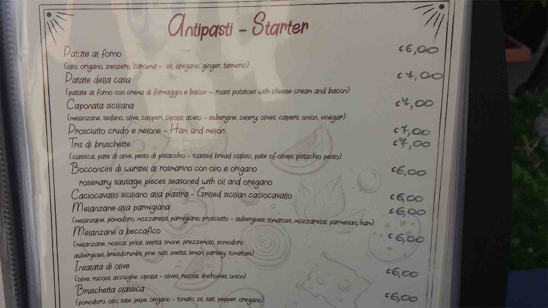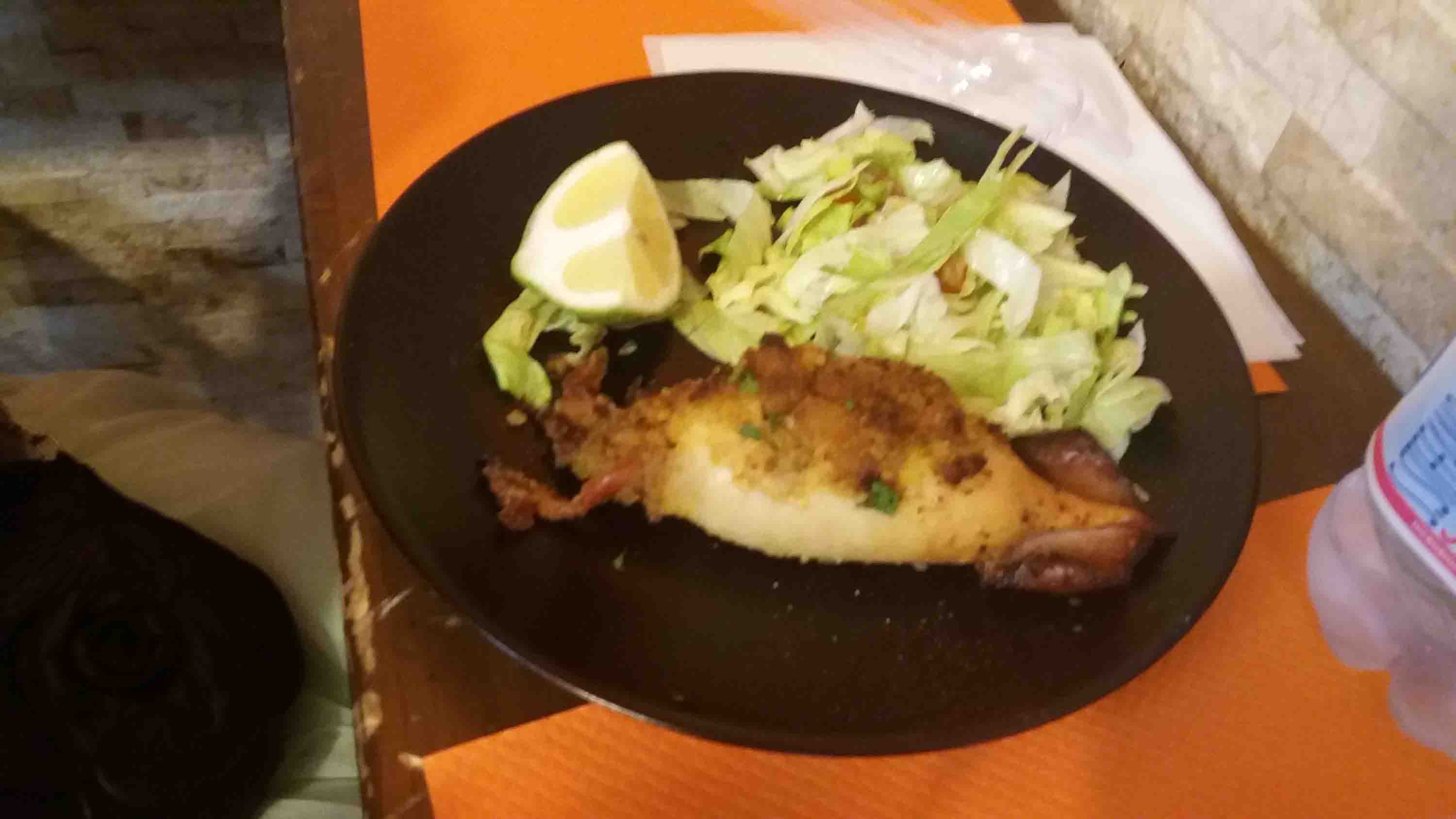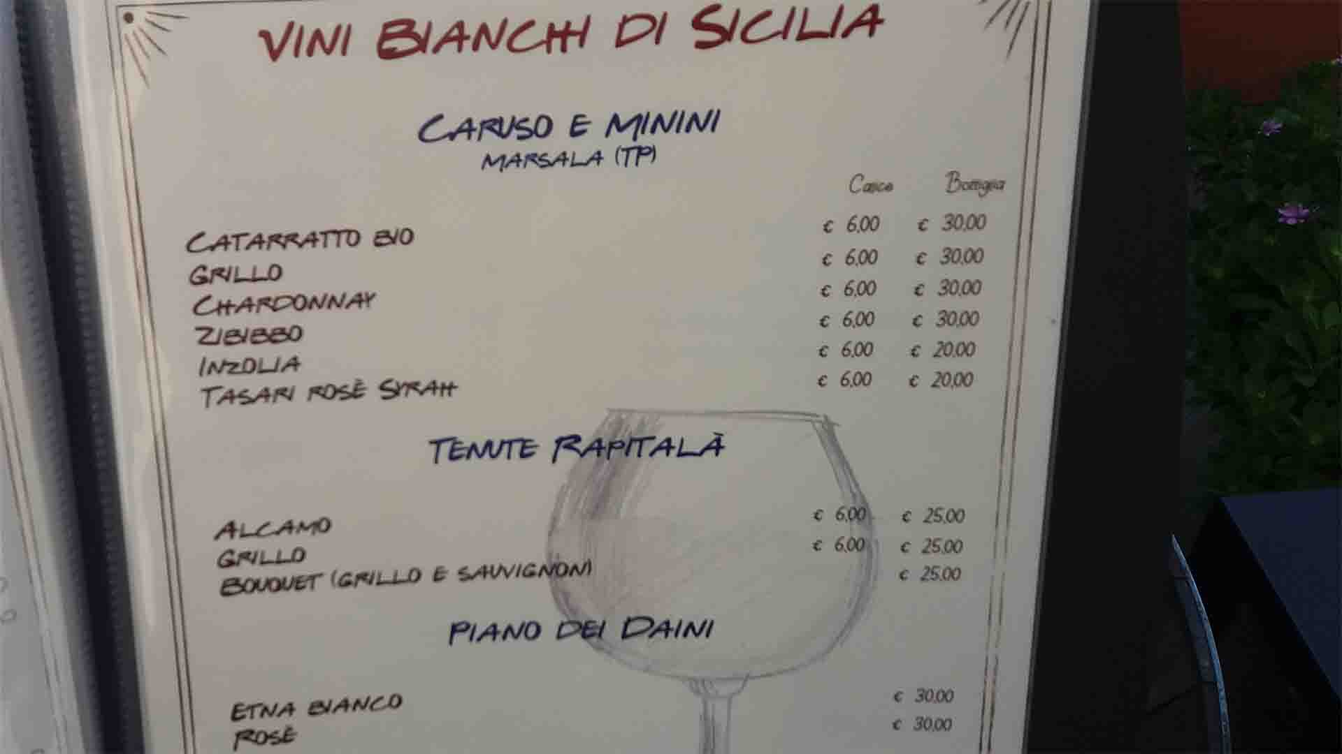 Администратор, чуть подумав, приглашает нас внутрь, очень быстро, но любезно всё объясняет, подходит официант, заказываем уже и через 10 минут нам выносят вкуснейшую местную Палермскую еду, и графин прохладного белого вина.