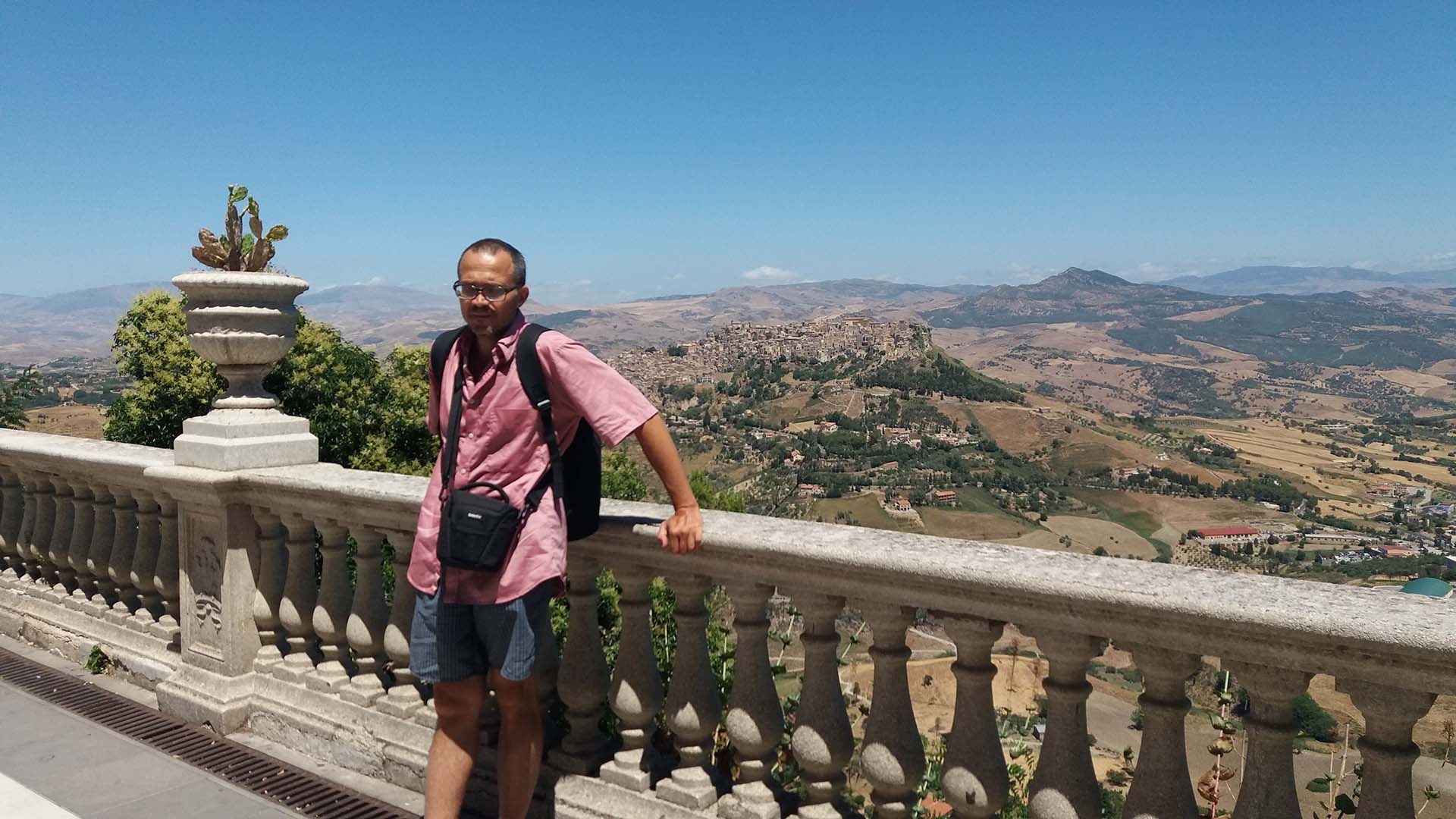 Центр города находится на краю холма, откуда открывается захватывающий панорамный вид на окрестности и другой город поменьше на соседней горе (Calascibetta). И даже есть бесплатный общественный бинокль.