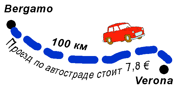 Здесь переведены тарифы на проезд по платной автостраде в Италии между разными городами.